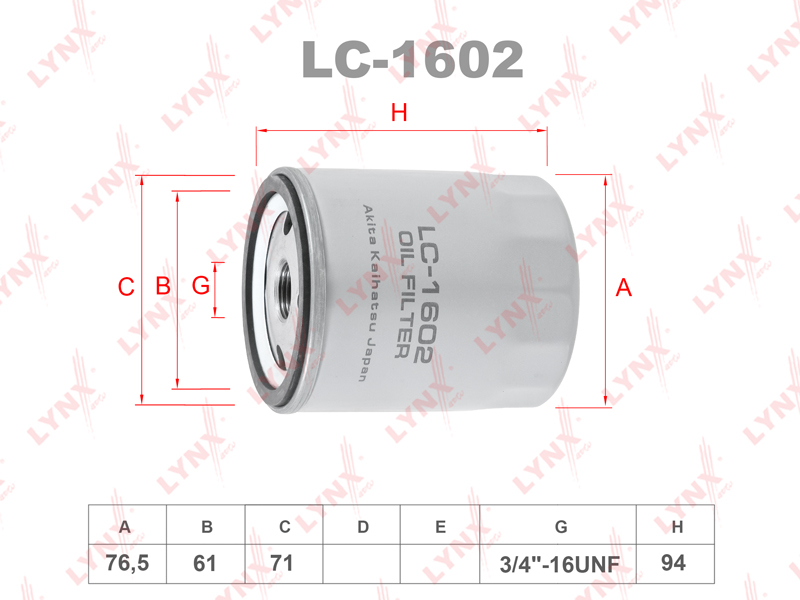LYNXauto Фильтр масляный LC1602