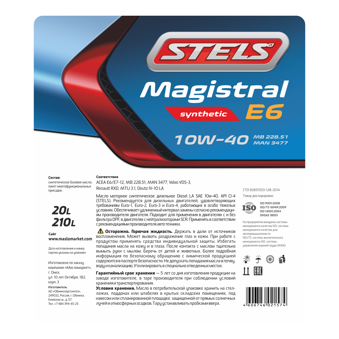 Масло моторное STELS Magistral E6 10W40 20 л
