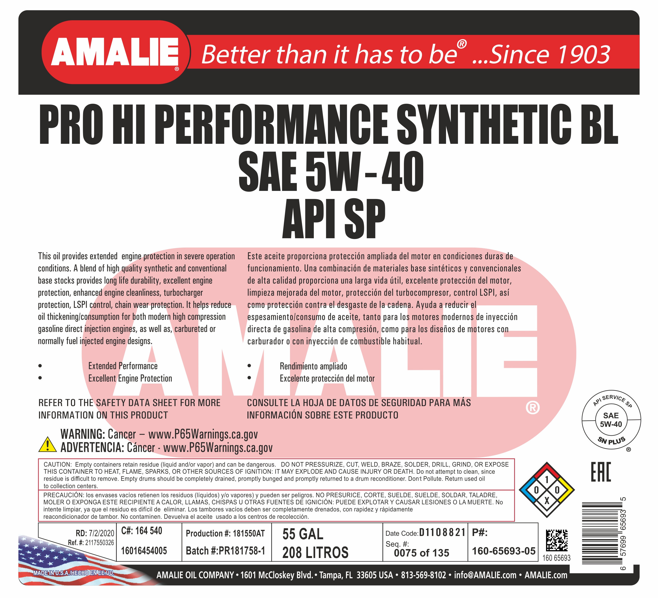 Масло моторное AMALIE PRO High Perf Synthetic 5w40 1л розлив из бочки